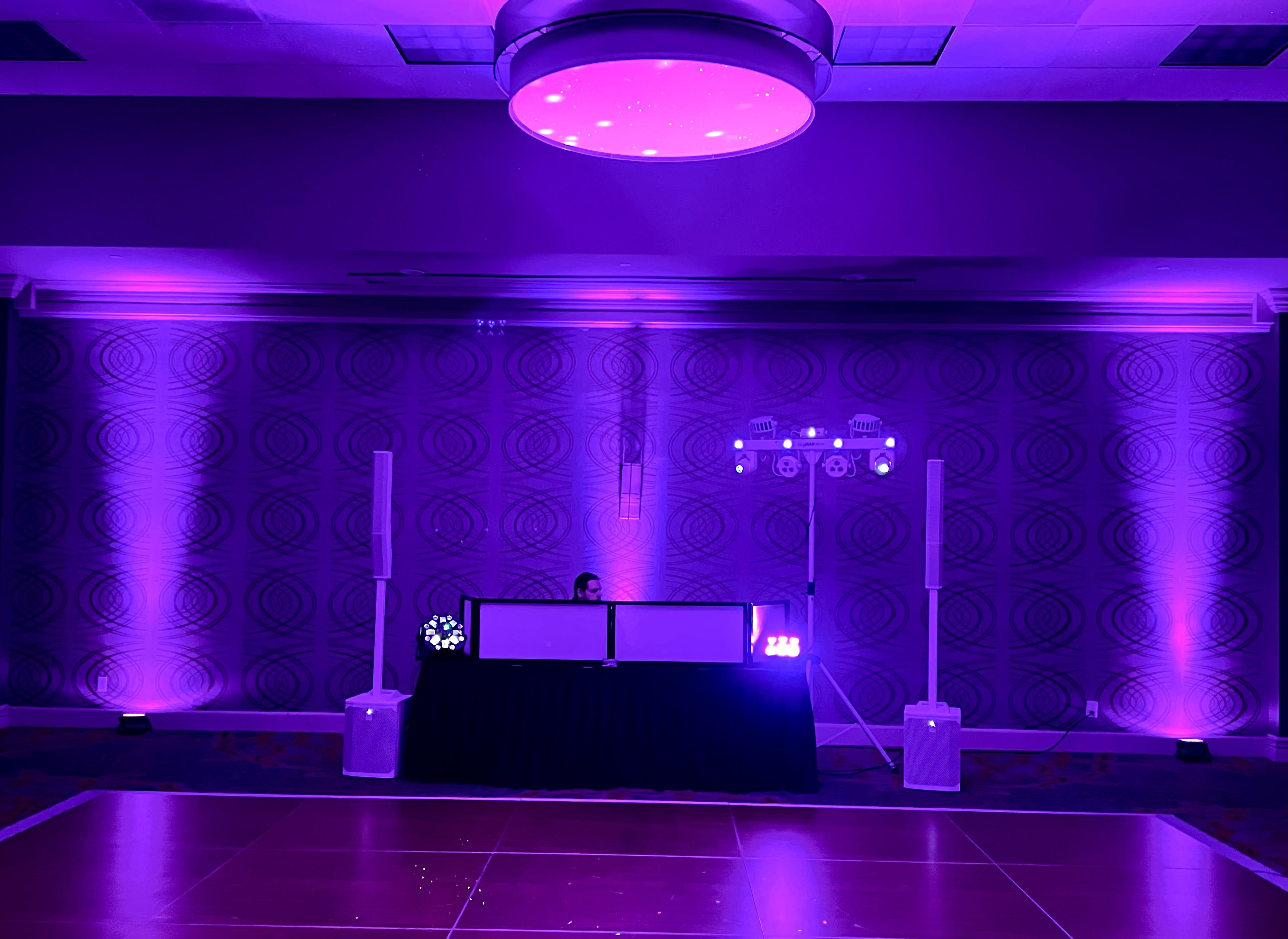 Our color uplighting services allow you to set the perfect mood and ambiance, as we strategically place vibrant LED lights throughout your venue, illuminating it with a mesmerizing spectrum of colors that complement your theme and elevate the atmosphere to new heights. With our monogram services, we craft custom designs that showcase your initials, logos, and more then project them with elegance onto walls, dance floors, or any desired surface, adding personalization to your event.