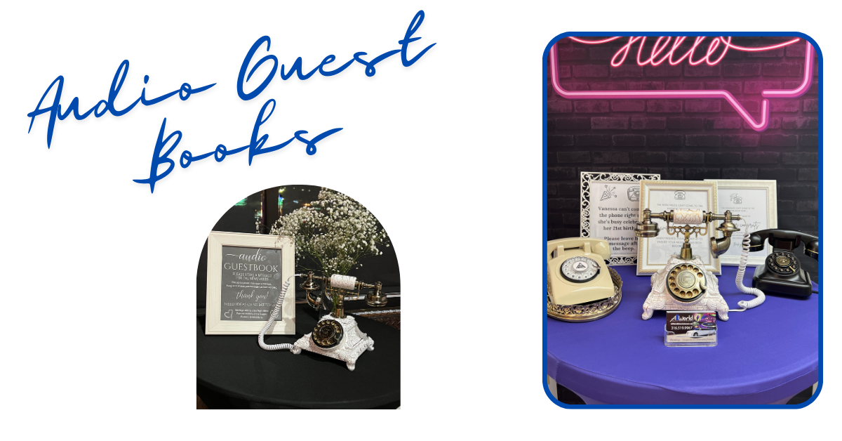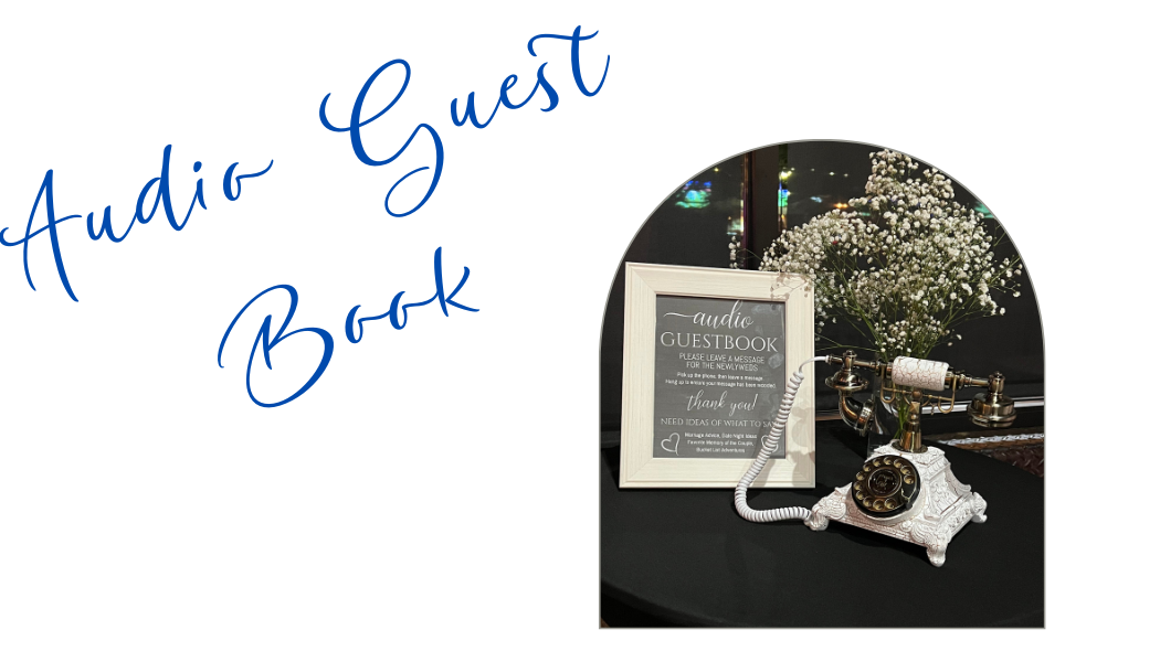 The Audio Guest Book is a one-of-a-kind experience that transforms traditional guest books into a captivating journey of voices and emotions. By replacing pen and paper with a dedicated phone line, it allows guests to leave their personal touch in a more intimate and expressive manner. As each guest steps up to the Audio Guest Book, they are invited to share their thoughts, memories, and heartfelt messages using the power of their voice by the guest(s) of honor. This unique format captures the raw authenticity of each individual, as laughter, tears, and the nuances of their spoken words paint a vivid picture of their connection to the occasion. The recorded messages become cherished keepsakes, transporting listeners back to that special moment, enveloping them in a tapestry of shared experiences and emotions.